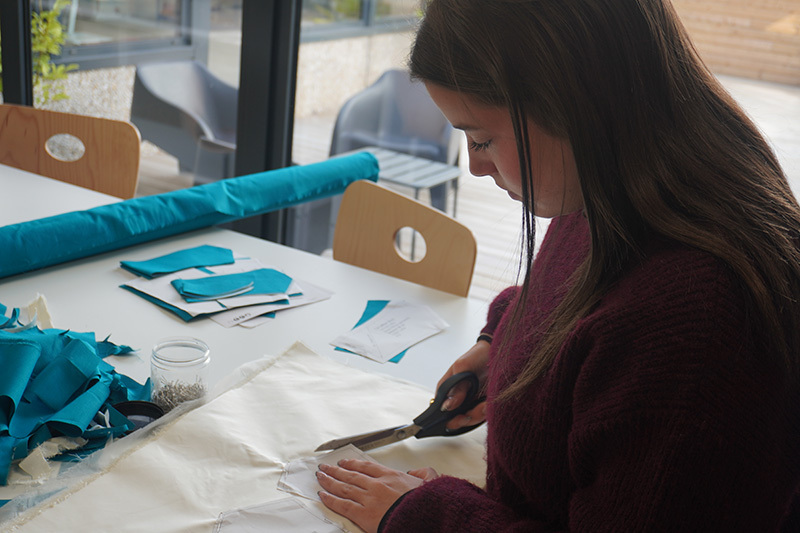 Ce projet valorise à la fois le recyclage textile et la rigueur technique exigée dans les métiers du sur-mesure et du luxe.